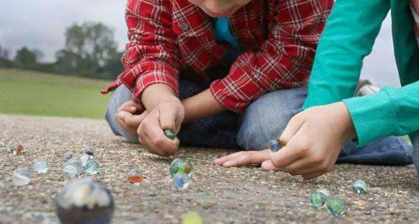 玩弹珠通常是男孩子的游戏,趴在地方瞅准弹珠的认真劲,真是可爱极了!