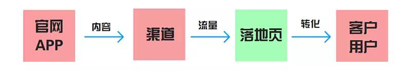由上图我们看到,将官网、APP等平台中最希望用户看到的内容,通过不同的渠道分发出去,由渠道带来流量,用户点击任意渠道链接/内容,进入的第一个页面即称为落地页,消费者看到广告banner后,通过点击跳转链接后出现的第一个页面。