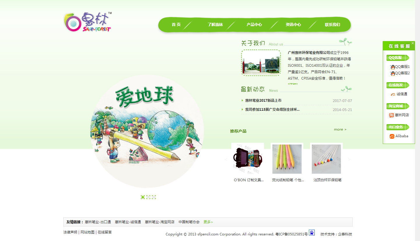 广州惠林环保笔业有限公司,成立于1996年,全球首家用报纸替代木材生产环保铅笔的工厂。在国内最先成功研制环保铅笔,并获得ISO9001、ISO14001国际认证,工厂面积1.3万平方米,年产量逾1亿支。公司凭着在行业中的领先地位和产品的卓越品质,通过全国制笔标准化技术委员会的审批,成为《纸杆铅笔》行业标准的起草单位。“惠林”环保铅笔利用回收报纸等纸张作为原材料,替代传统铅笔生产所用的木材,做到笔杆坚固、表面光滑、不偏芯、不断芯,即便选用最为普通的卷笔刀,仍然卷削流畅。我司产品符合EN-71、ASTM、CPISA安全标准,获得全球客户的信赖!