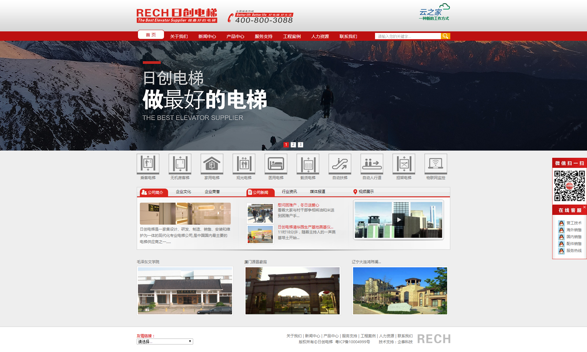 日创电梯,日新月异,创新生活。科技的发展突飞猛进,只争朝夕的日创团队将与时俱进、顽强拼搏,用性能优越、品质可靠、服务周到的日创电梯来回报社会各界。