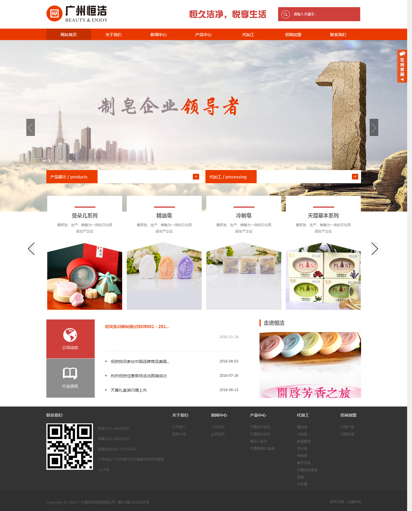 广州恒洁日用品有限公司成立于2005年,是一家集研发、生产、销售为一体的日化用品生产企业。公司在研发、生产、运营上受恒洁国际(控股)药业集团有限公司管理与指导。恒洁公司在销售网络和产品生产上为客户提供全方位的支持。旗下有“天尊”、“蔓朵儿”、“御婉蓉颜”、“花木至美”等品牌。天尊凝脂精油皂系列产品,采用欧洲同步工艺及配方,率先在国内推出高端凝脂精油皂系列产品,成为与欧洲皂品同步的高端护肤皂品。天尊草本精油皂系列产品,精选植物优质原料,融合最新护肤理念,引领植物护肤时尚。公司成立以来,一直注重产品开发和技术研究,与国内外研究机构保持良好的合作和技术交流,拥有优秀的人材队伍,为产品提供完善的配方和技术,使产品在质量抑或科技含量上都有强有力的保障。