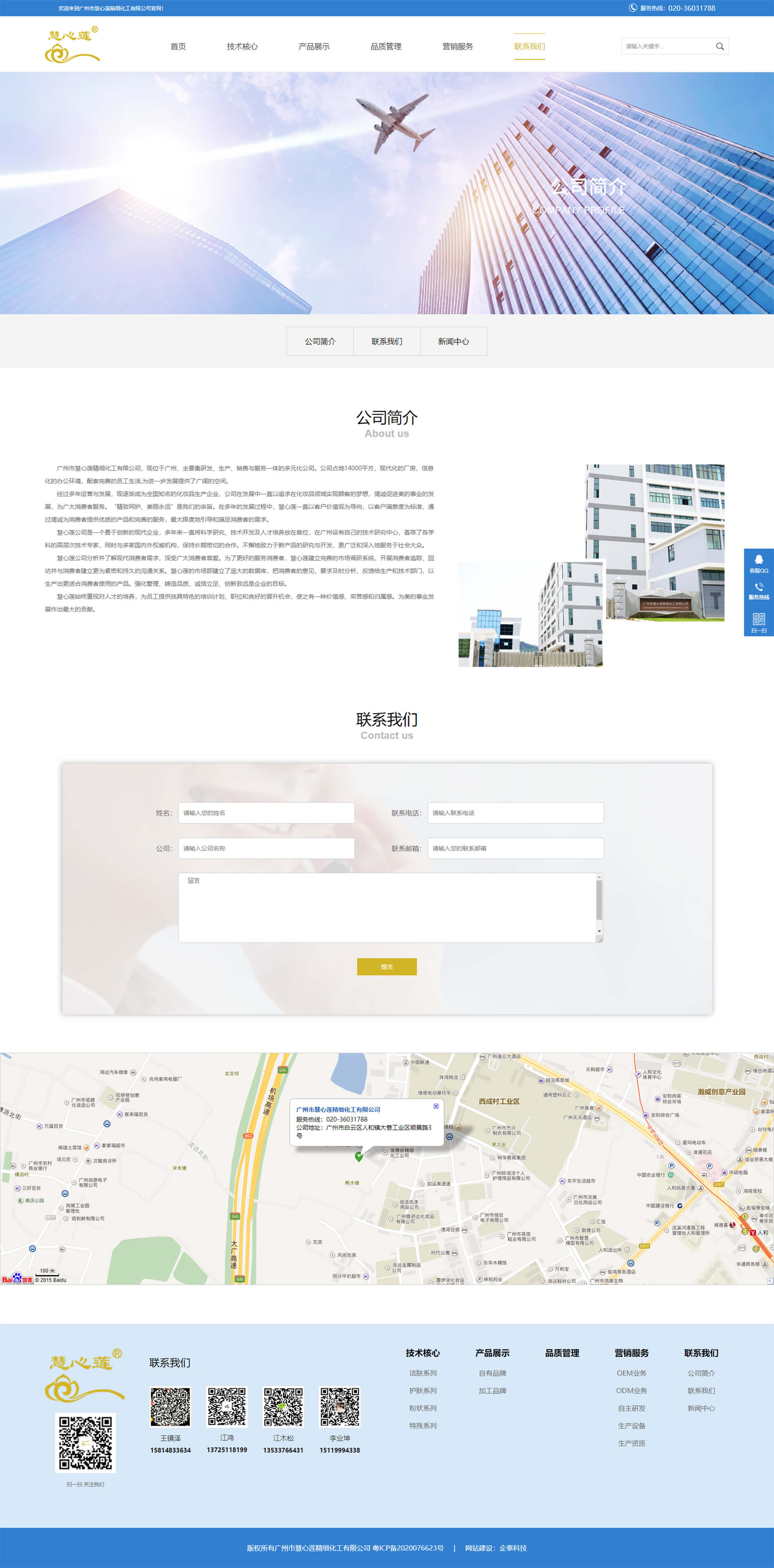 广州市慧心莲精细化工有限公司,现位于广州,主要集研发、生产、销售与服务一体的多元化公司。公司占地14000平方,现代化的厂房,信息化的办公环境,配套完善的员工生活,为进一步发展提供了广阔的空间。