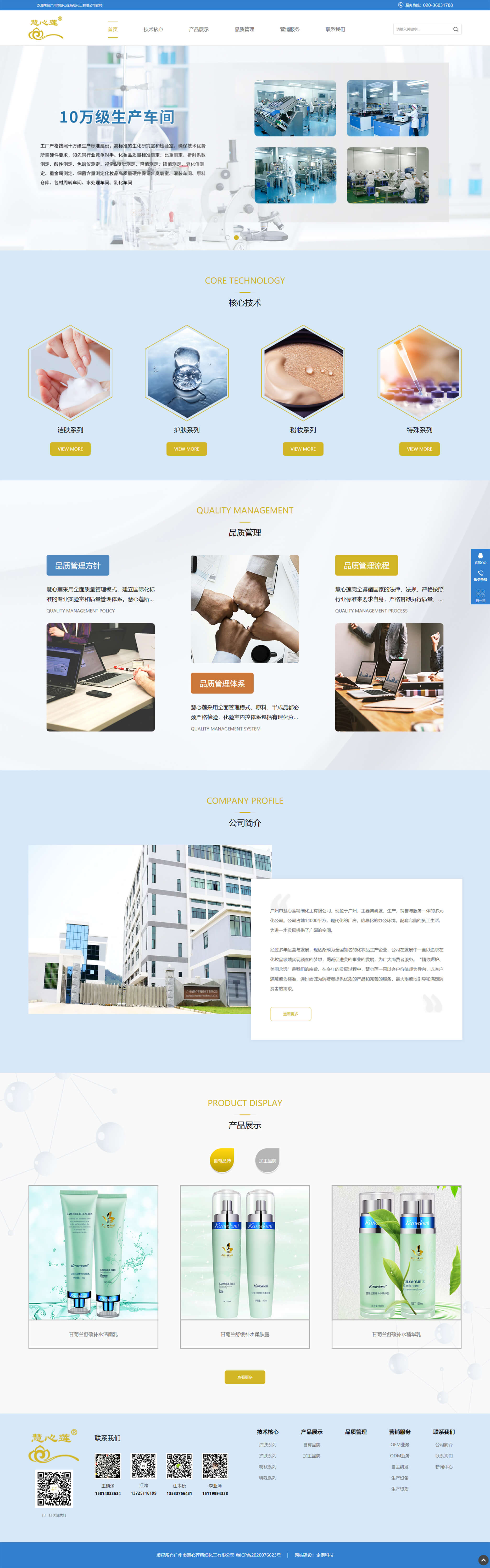 经过多年运营与发展,现逐渐成为全国知名的化妆品生产企业,公司在发展中一直以追求在化妆品领域实现顾客的梦想,竭诚促进美的事业的发展,为广大消费者服务。“精致呵护、美丽永远”是我们的宗旨。在多年的发展过程中,慧心莲一直以客户价值观为导向,以客户满意度为标准,通过竭诚为消费者提供优质的产品和完善的服务,最大限度地引导和满足消费者的需求。