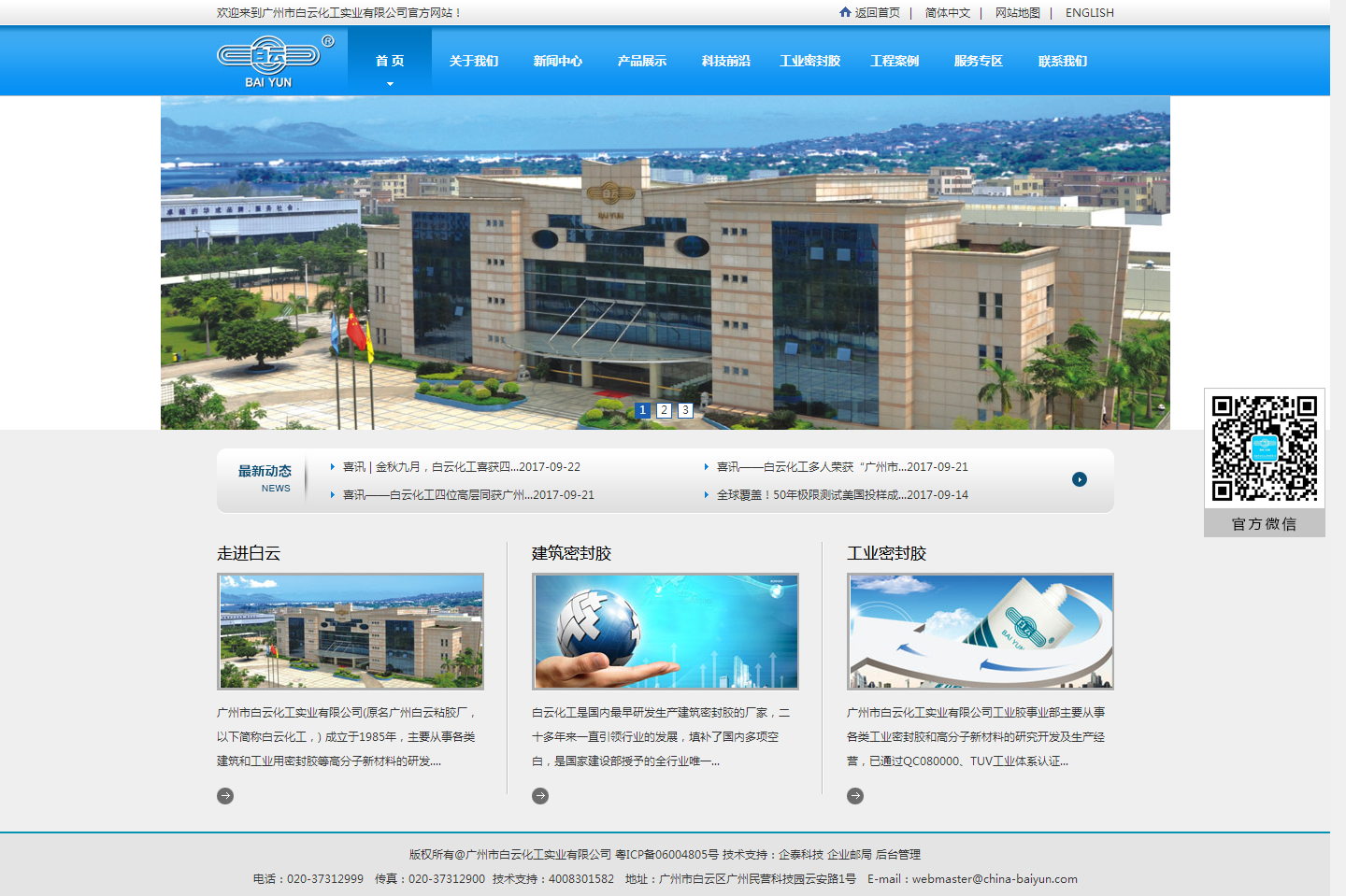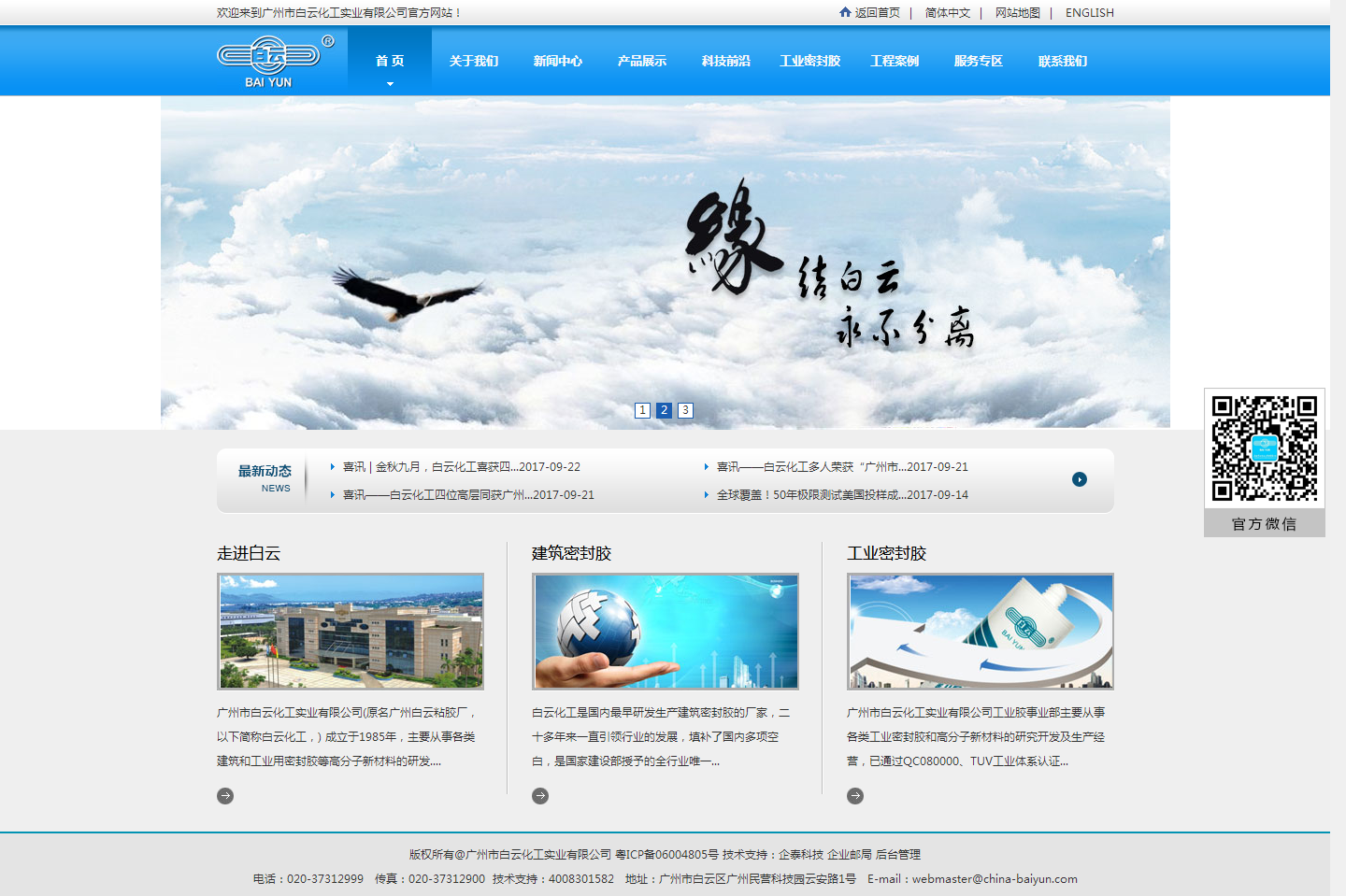 广州市白云化工实业有限公司 2017-09-22 来自: 关键词: 广州市白云化工实业有限公司(原名广州白云粘胶厂,以下简称白云化工,)成立于1985年,主要从事各类建筑和工业用密封胶等高分子新材料的研发、生产及经营,并引领着行业的发展。白云化工是国家首批认定的硅酮结构密封胶生产及销售企业,也是国家火炬计划重点高新技术企业,建设部十大自主创新优势企业,广东省技术创新优势企业以及广东省知识产权示范企业。