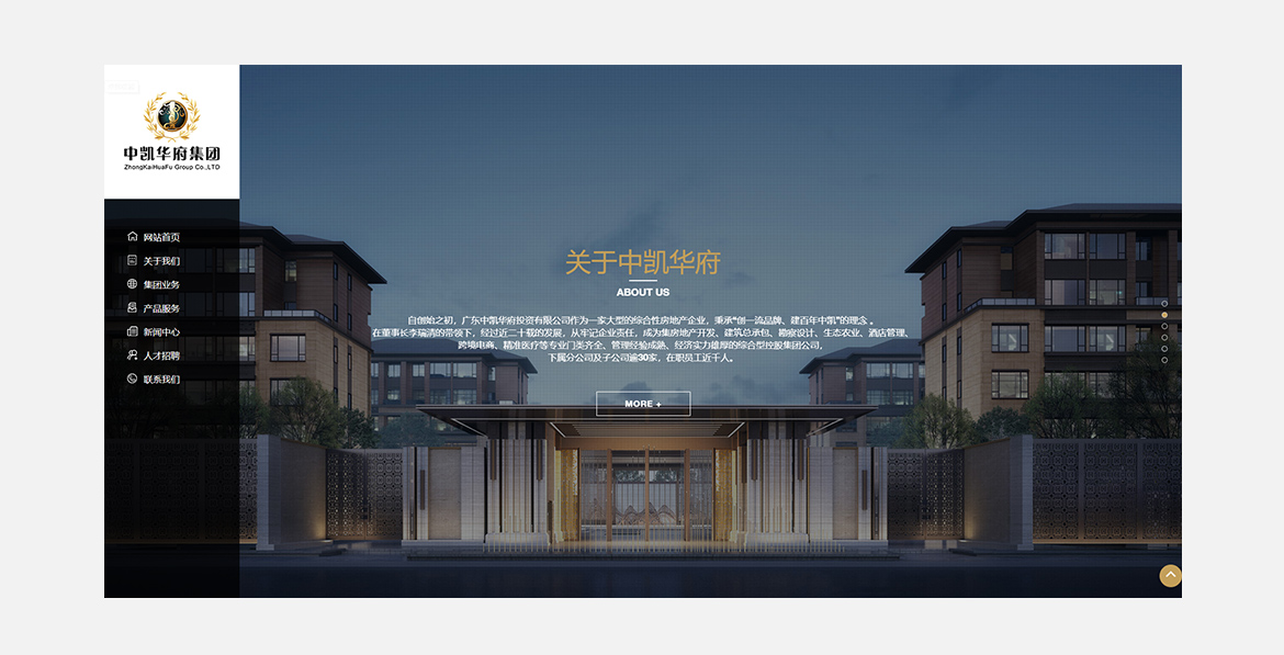 自创始之初,广东中凯华府投资有限公司作为一家大型的综合性房地产企业,秉承“创一流品牌、建百年中凯”的理念 。在董事长李瑞清的带领下,经过近二十载的发展,从牢记企业责任,成为集房地产开发、建筑总承包、勘察设计、生态农业、酒店管理、跨境电商、精准医疗等专业门类齐全、管理经验成熟、经济实力雄厚的综合型控股集团公司,下属分公司及子公司逾30家,在职员工近千人。