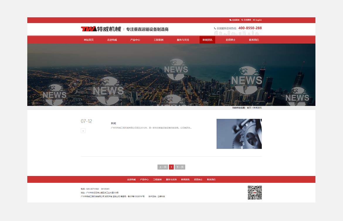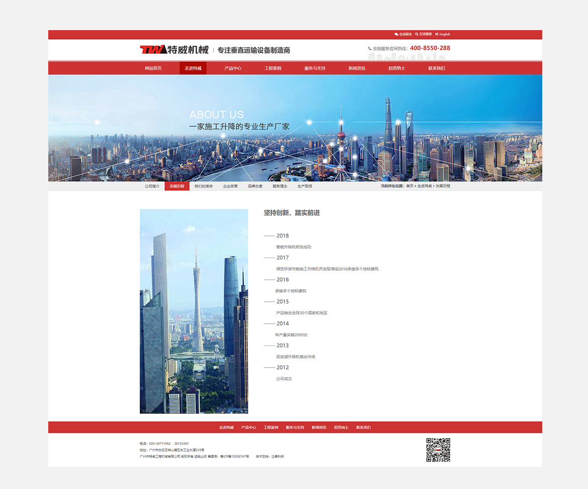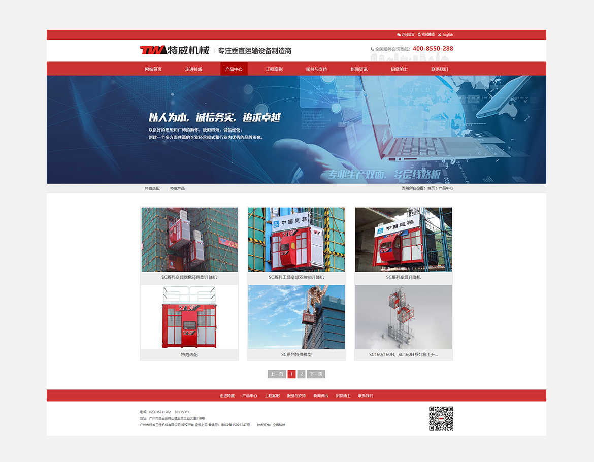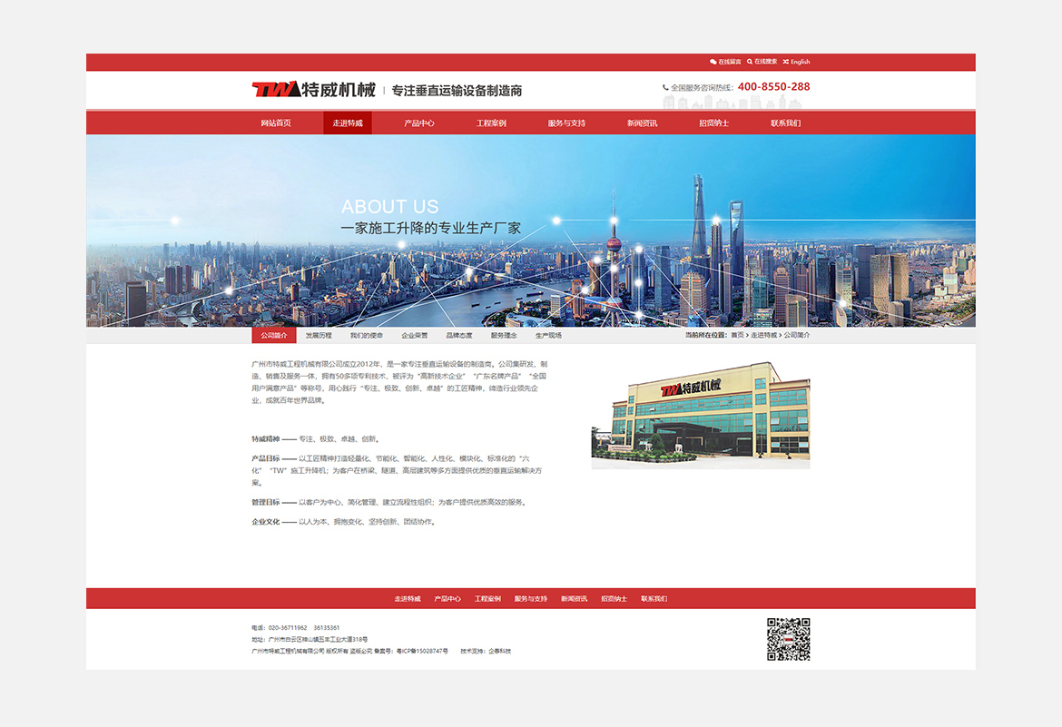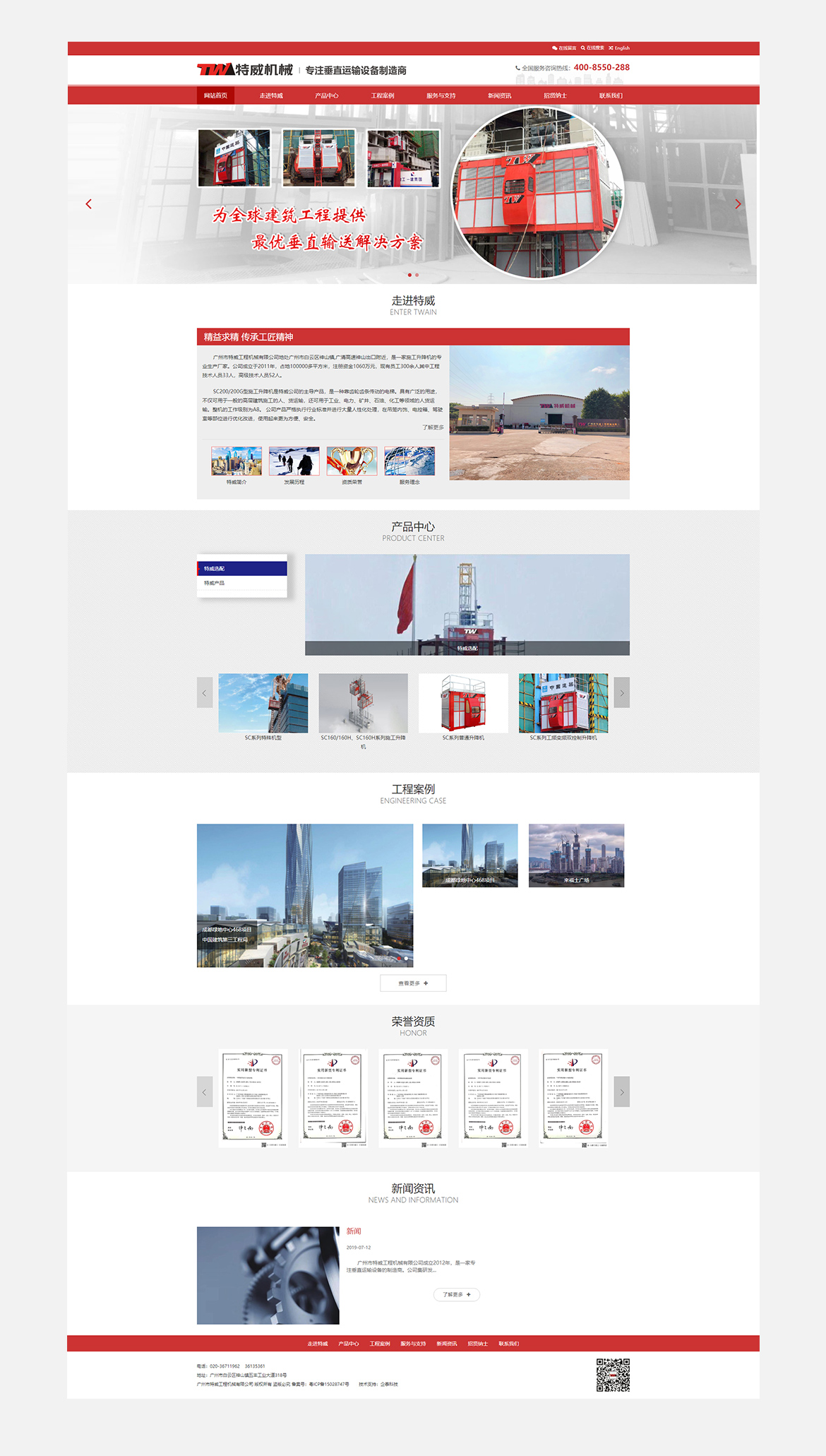 广州市特威工程机械有限公司 2019-10-17 来自:企泰 关键词:广州市特威工程机械有限公司, 广州市特威工程机械有限公司网站:gzstw.com类别:工程机械广州市特威工程机械有限公司成立2012年,是一家专注垂直运输设备的制造商。公司集研发、制造、销售及服务一体,拥有50多项专利技术,被评为“高新技术企业”“广东名牌产品”“全国用户满意产品”等称号,用心践行“专注、极致、创新、卓越”的工匠精神,缔造行业领先企业,成就百年世界品牌。网站建设 | 企泰科技 webqt.cn