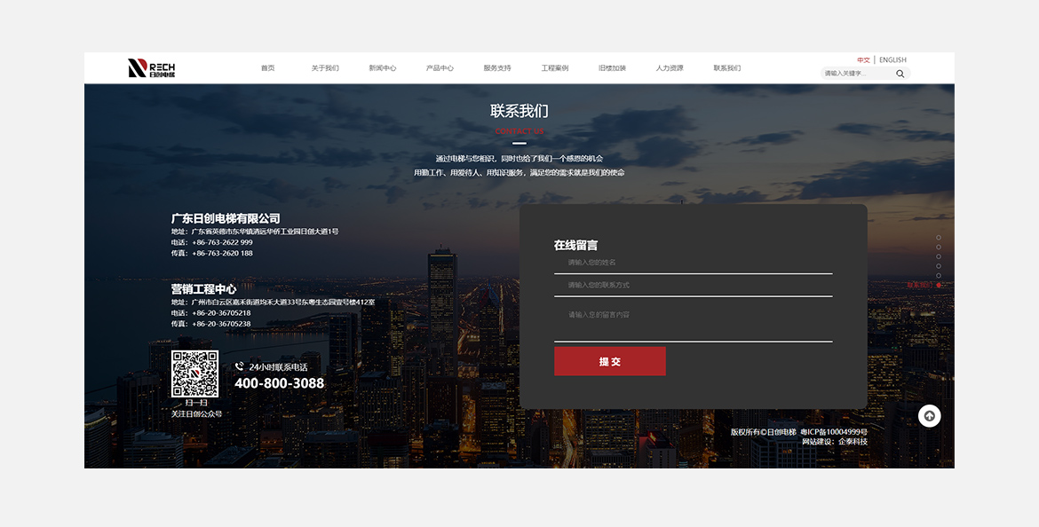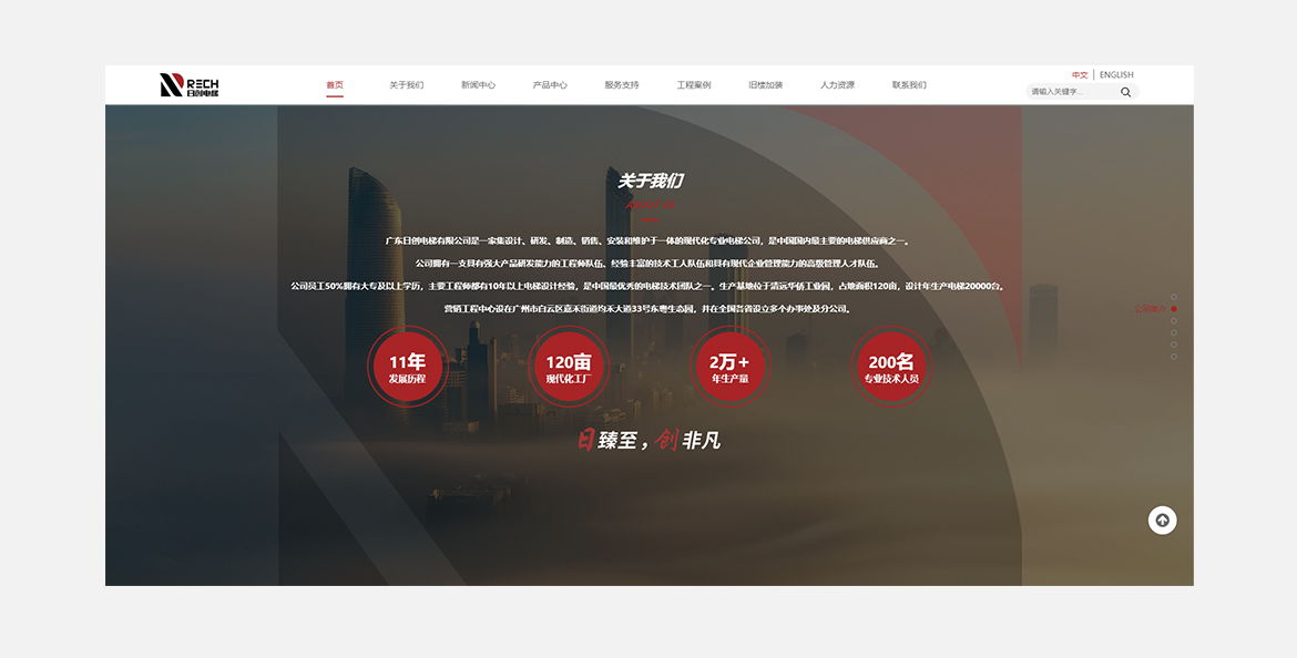 日创电梯集研发、设计、制造、销售、安装和维护为一体的现代化专业电梯公司,是国内最主要的电梯供应商之一。公司成立于2008年,其中专业技术人员占40%。原公司位于广州市花都区炭步街茶塘工业区大达埔路3号,占地面积28000多平方米,年生产电梯能力超过6000台;现乔迁至新生产基地位于清远华侨工业园,占地面积120亩,设计年生产电梯20000台。