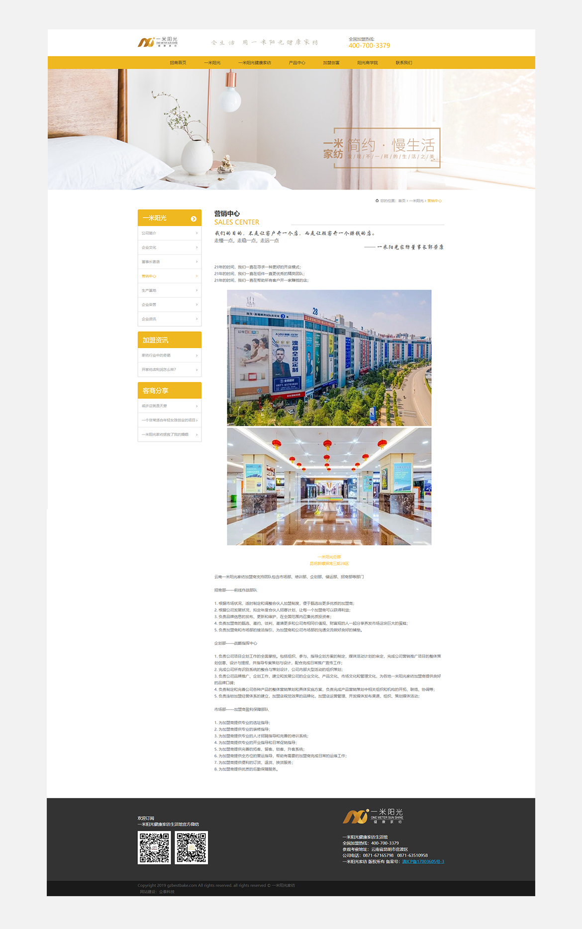 云南一米阳光家纺有限公司成立于 2014 年,是一家集研发、设计、生产、销售和物流于一体的家居用品企业。品牌创立于 2005 年,是云南省本土家纺品牌,总部设在云南省昆明市。公司的营销体系为直营与加盟并行,同时实施电商渠道发展战略,引入更多志同道合的伙伴加入我们的大家庭。