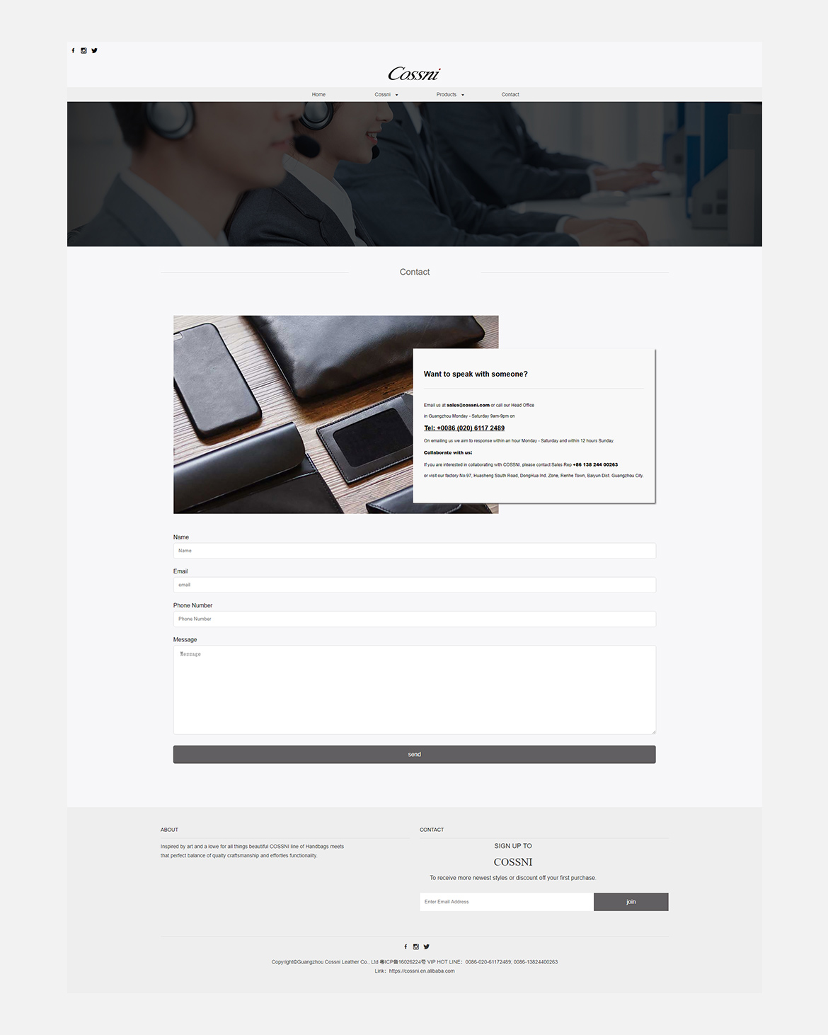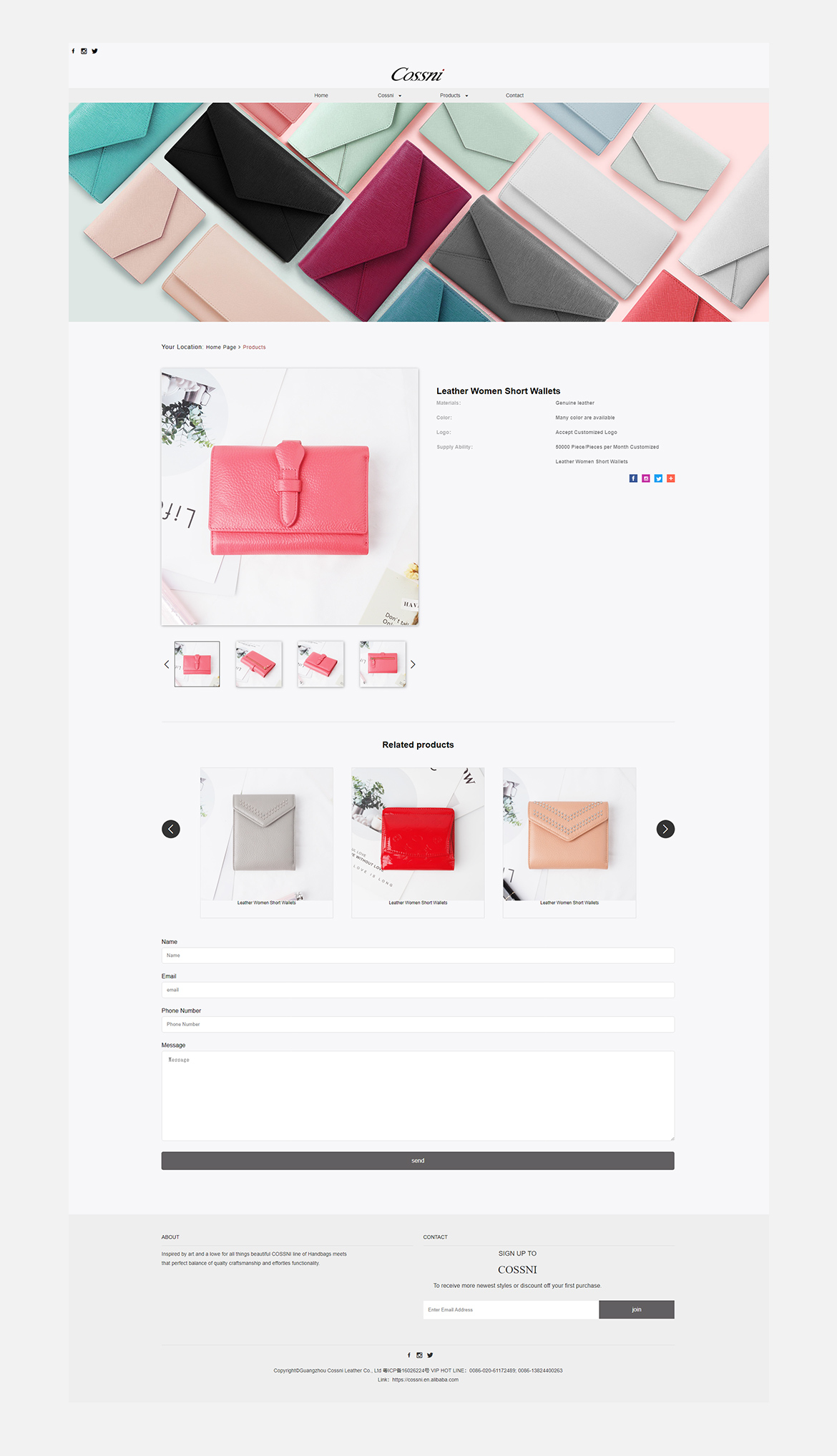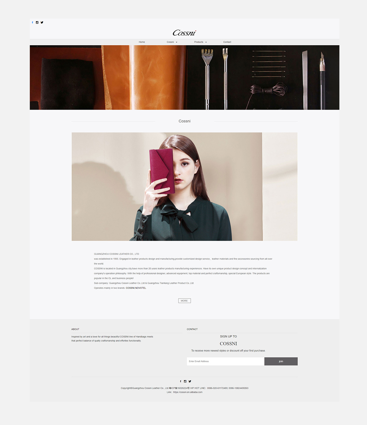 was established in 1995.Engaged in leather products design and manufacturing,provide customized design service、leather materials and fine accessories sourcing from all over the world.COSSNI is located in Guangzhou city,have more than 20 years leather products manufacturing experiences.