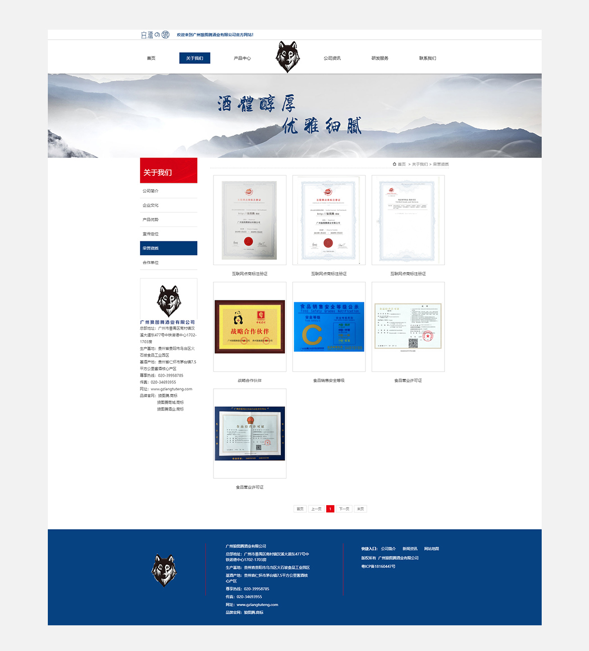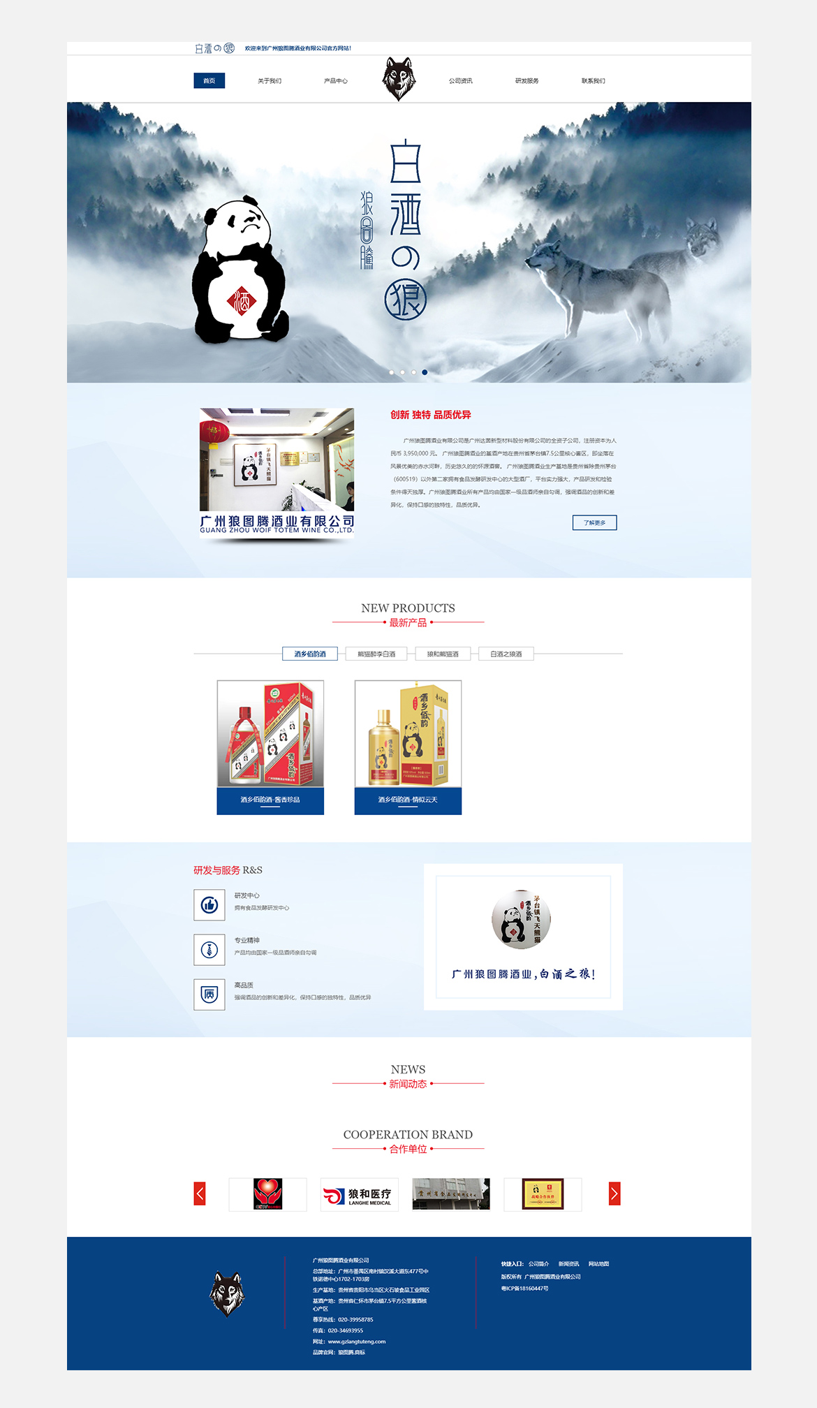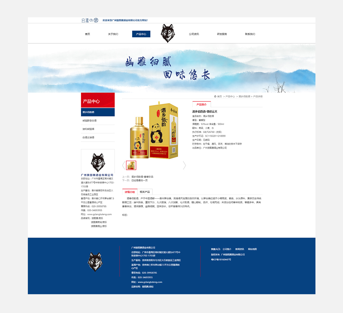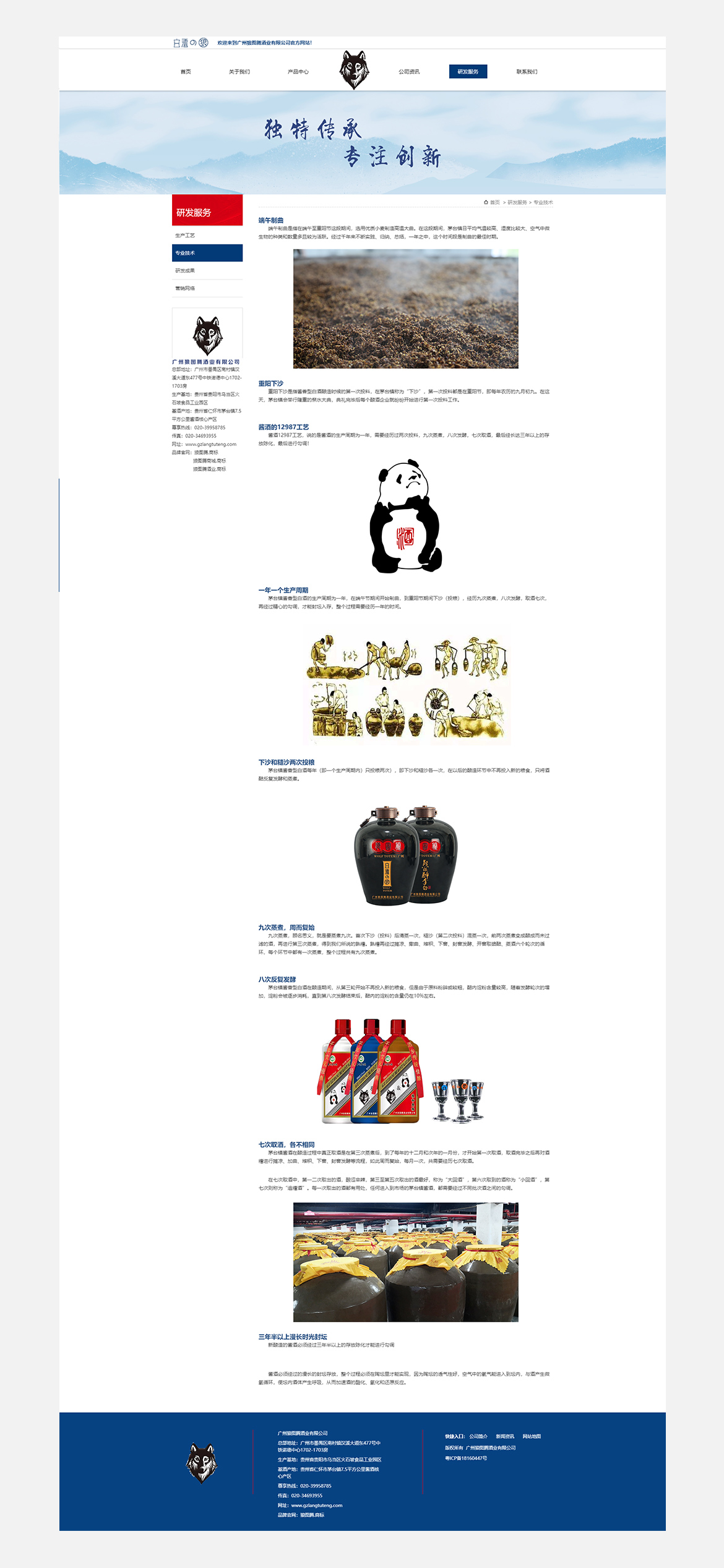 经过数年的专业调查研究和精心策划横空出世,至今传承和注册了近两百个商标、版权和专利,并将酒类品牌精准定位为中高端酱香型纯粮陈酿白酒。 广州狼图腾酒业在掌握酱香型白酒核心勾调技术的基础上,集中精力运营中高端酒类品牌,旗下拥有白酒之狼、酒乡佰韵、狼和熊猫、熊猫醉李白等自主品牌。