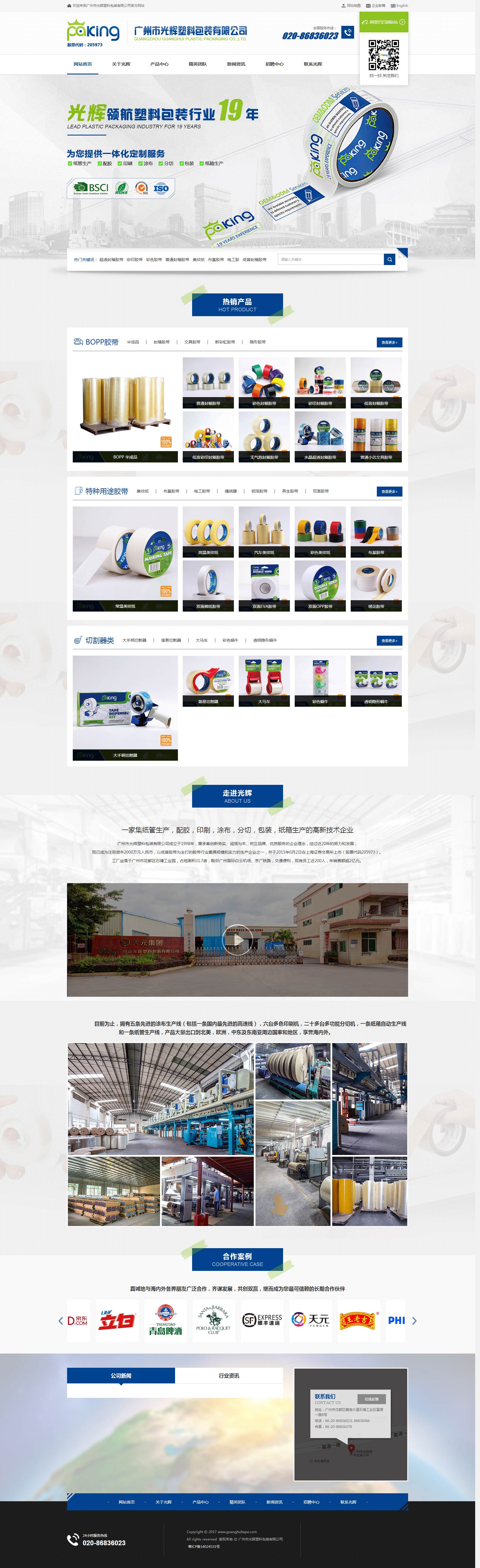 广州市光辉塑料包装有限公司 2017-09-22 来自: 关键词: 广州市光辉塑料包装有限公司成立于1998年,秉承着创新务实、诚信为本、树立品牌、优质服务的企业理念,经过近20年的努力和发展,现已成为注册资本2000万元人民币,以低音胶带为主打的胶带行业最具规模和实力的生产企业之一,并于2015年6月2日在上海证券交易所上市(股票代码205973)。工厂坐落于广州市花都区石塘工业园,占地面积31.7亩,毗邻广州国际白云机场、京广铁路,交通便利,现有员工近200人,年销售额超2亿元。