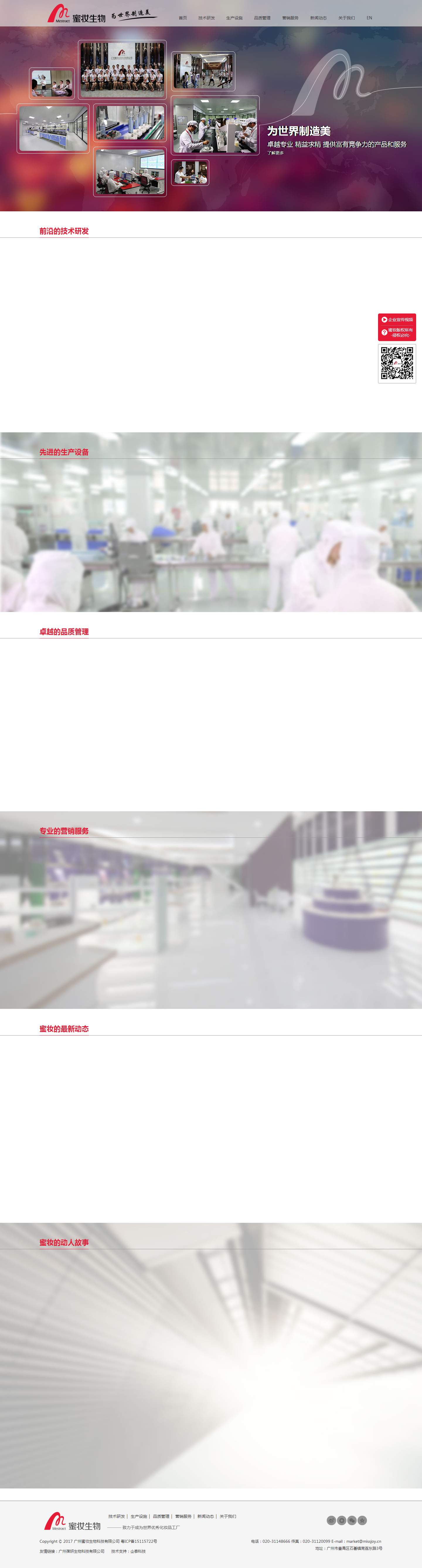 广州蜜妆生物科技有限公司,是一家集化妆品原料研制、配方开发、加工生产及配套性服务为一体的全球化妆品OEM/ODM服务企业。公司的前身葆妍生物科技,本着“追求卓越,秉承健康,成就美丽”的经营理念,经过十多年的不断发展完善与技术提升,在行业内颇具口碑和影响力。