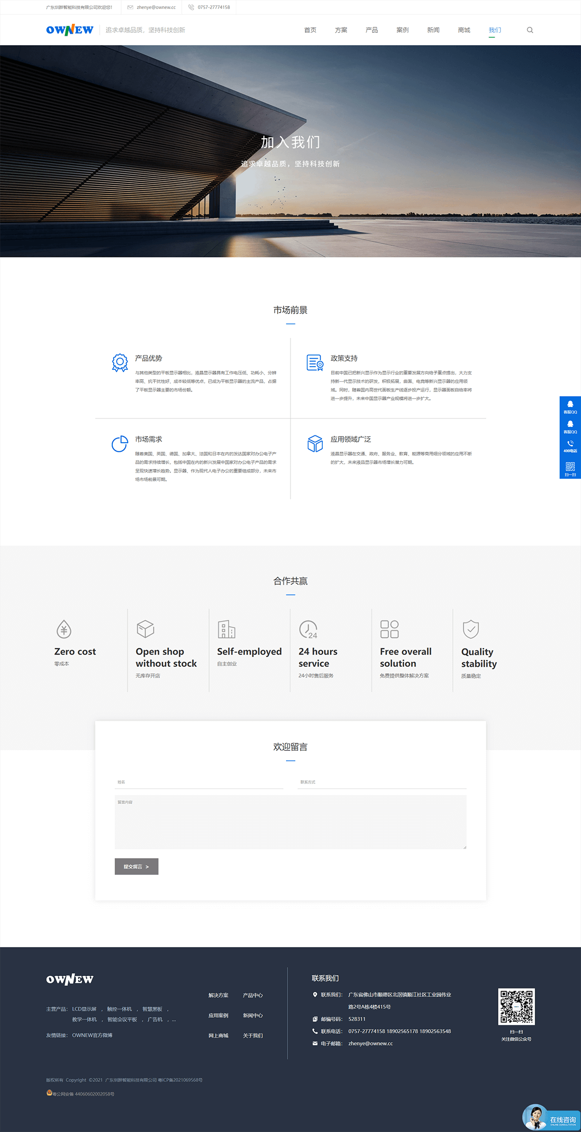 广东圳晔智能科技有限公司是一家从事商业显示整体解决方案的企业, 以OWNEW自主品牌为核心,秉承“追求卓越品质,坚持科技创新”的品牌价值观, 以及“诚信服务客户,友好协作共赢”的企业宗旨,我们始终用心在创造互动视界之美, 用心在创造和谐的人机交互类科技产品,努力为客户提供更优质的服务。