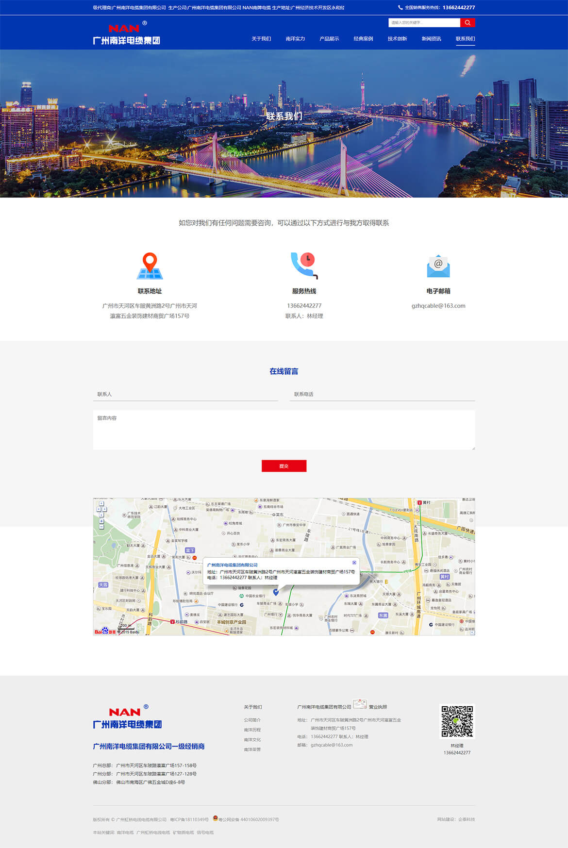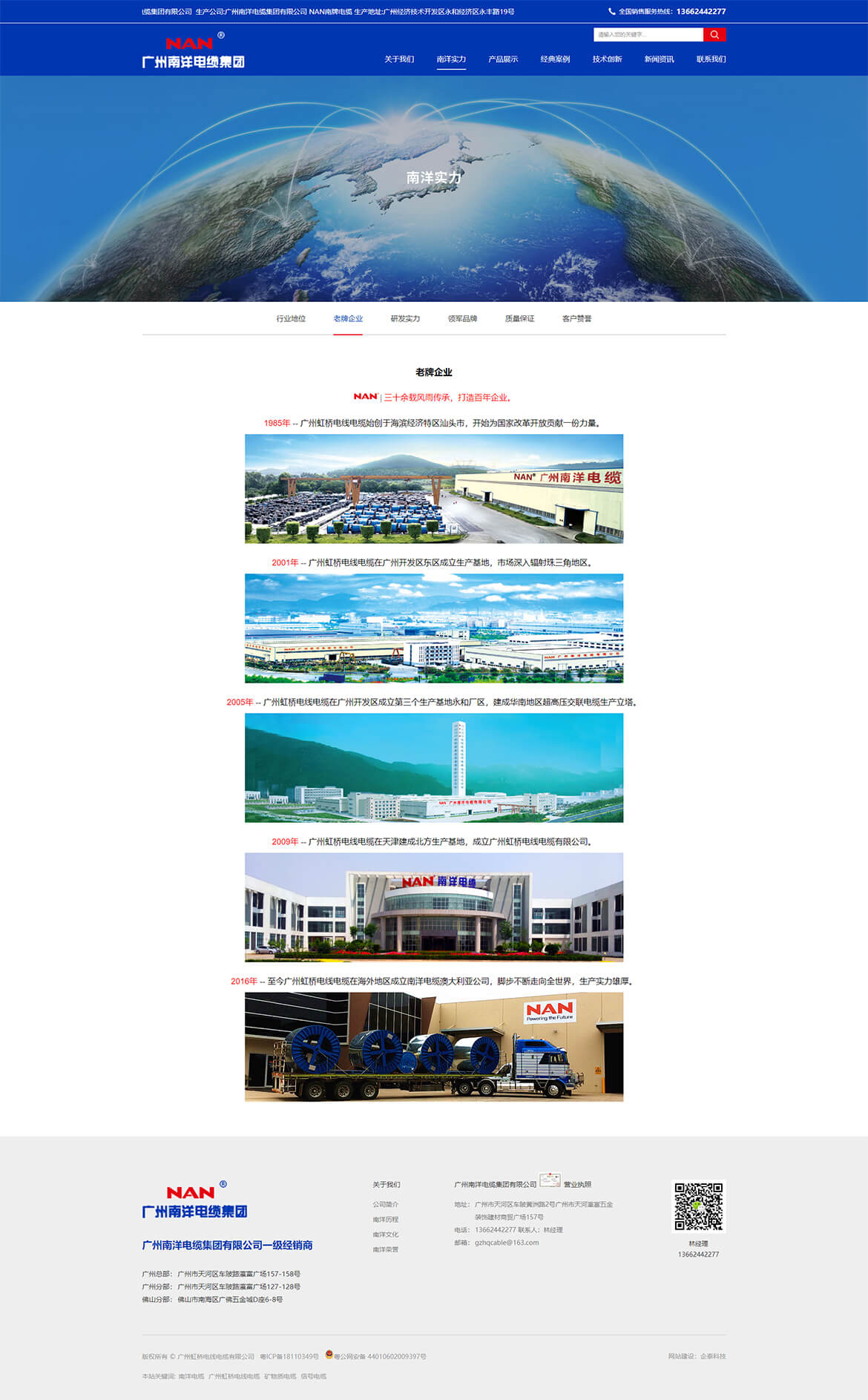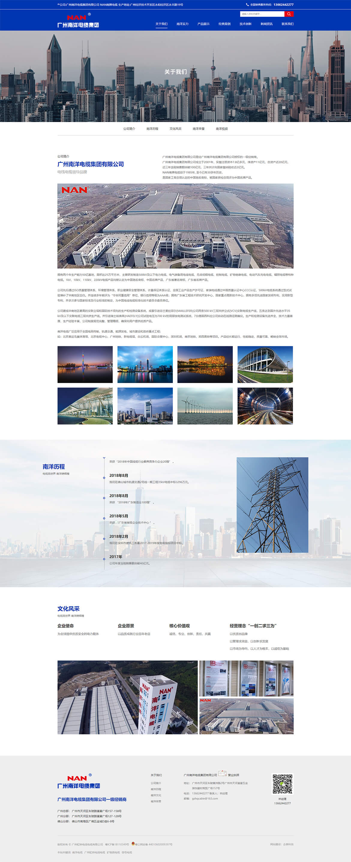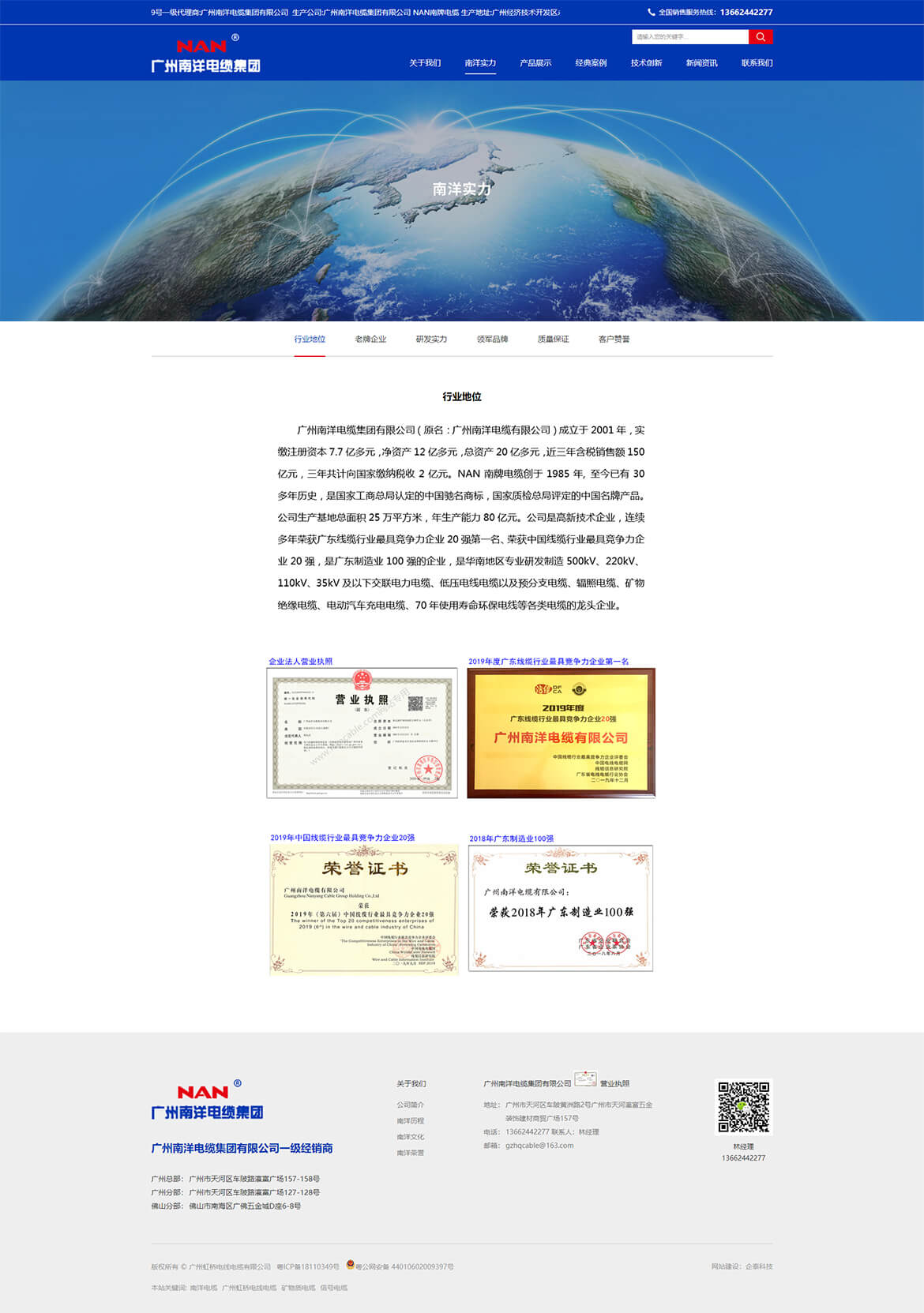广州南洋电缆集团有限公司经广州南洋电缆集团有限公司授权的一级经销商。广州南洋电缆集团有限公司成立于2001年,实缴注册资本7 .8亿多元,净资产11亿元,总资产近20亿元,近三年含税销售额突破100亿元,三年共计向国家缴纳税收近2亿元。NAN南牌电缆创于1985年,至今已有30多年历史,是国家工商总局认定的中国驰名商标,被国家质检总局评为中国名牌产品。
