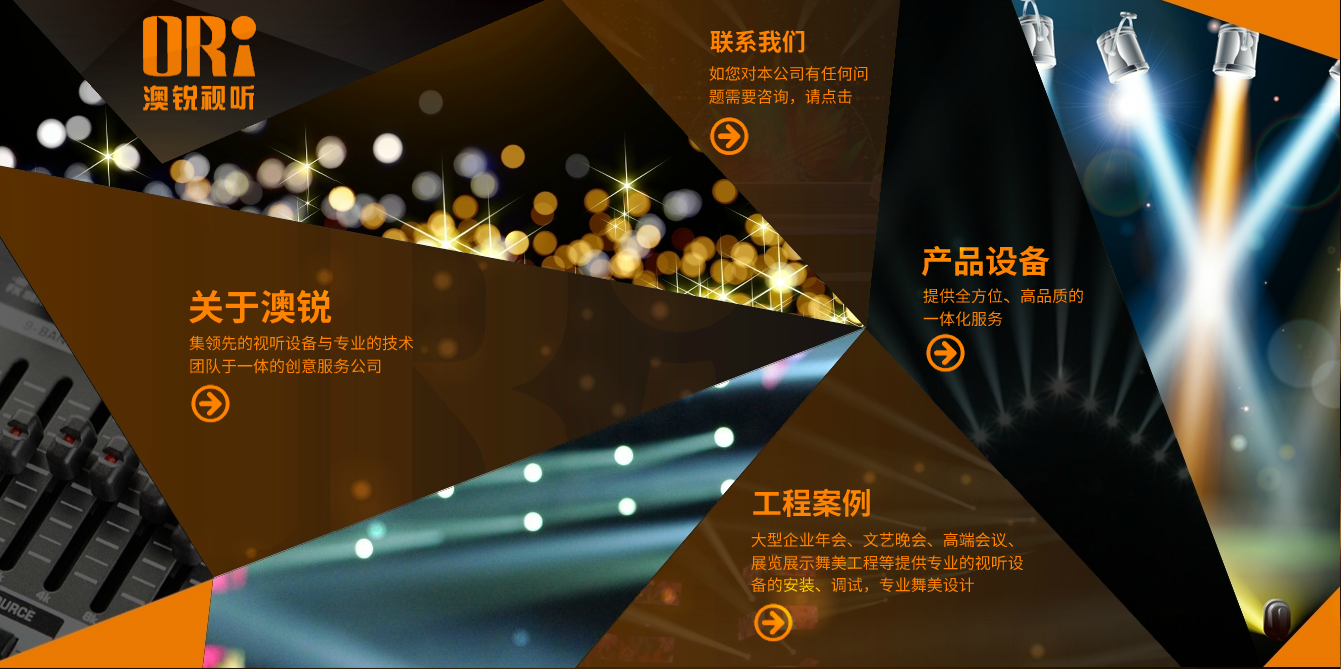 广州澳锐视听设备有限公司 2017-09-25 来自: 关键词: 广州澳锐视听设备有限公司是一家集领先的视听设备与专业的技术团队于一体的创意服务公司,为各大型企业年会、文艺晚会、高端会议、展览展示、舞美工程等提供专业的视听设备的安装、调试,专业舞美设计,专业舞台搭建和活动整体策划及品牌推广方案。公司以专业、高效、品牌化为经营理念,通过精良的技术、设备和专业的服务团队为客户提供全方位、高品质的一体化服务,透过我们无法熄灭的服务热情为广大客户呈现出一场美轮美奂的视听盛宴。