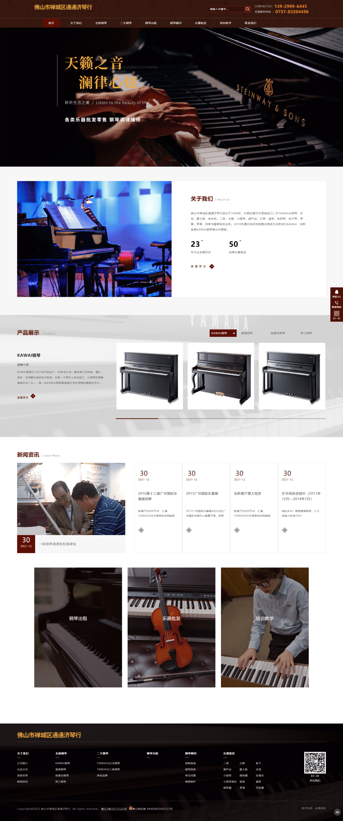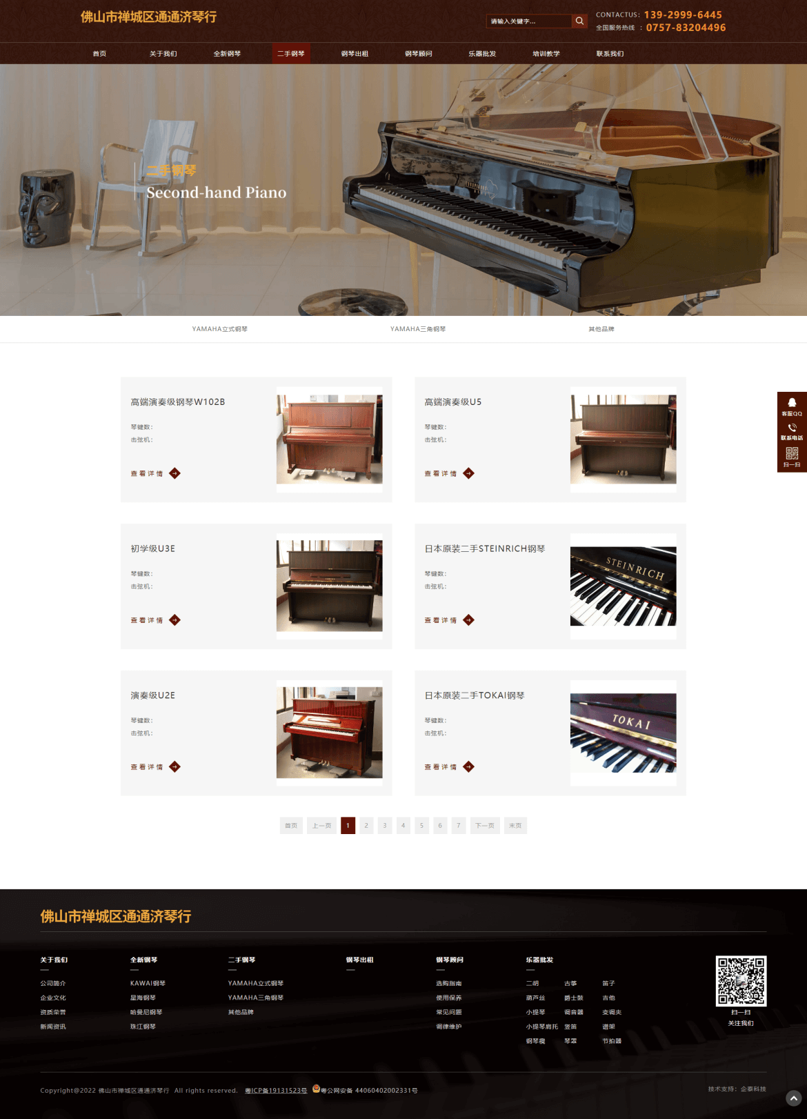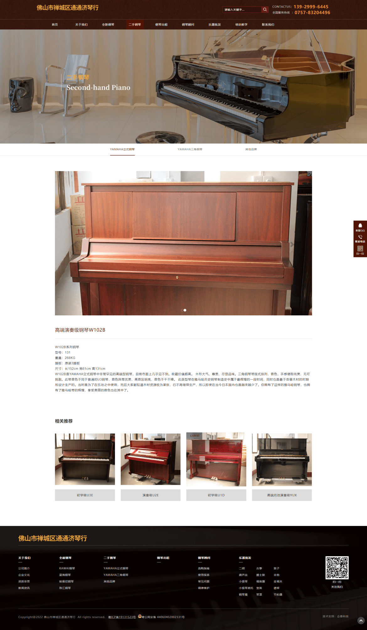 佛山市禅城区通通济琴行创办于1998年,长期经营日本原装进口二手YAMAHA钢琴、吉他、爵士鼓、电吉他、二胡、古筝、小提琴、葫芦丝、口琴、谱架、电钢琴、电子琴、琴凳、琴罩、各类书籍等批发业务。2010年通过良好的销售业绩成为全新进口KAWAI、全新宜昌KAWAI钢琴佛山代理商。货仓式钢琴展厅占地500多平方,二手全新钢琴货品齐全,是佛山地区最专业的钢琴批发商。多年来, 我们坚持“同质比价、同价比质”的经营服务理念,成为佛山地区最有影响力的琴行之一。