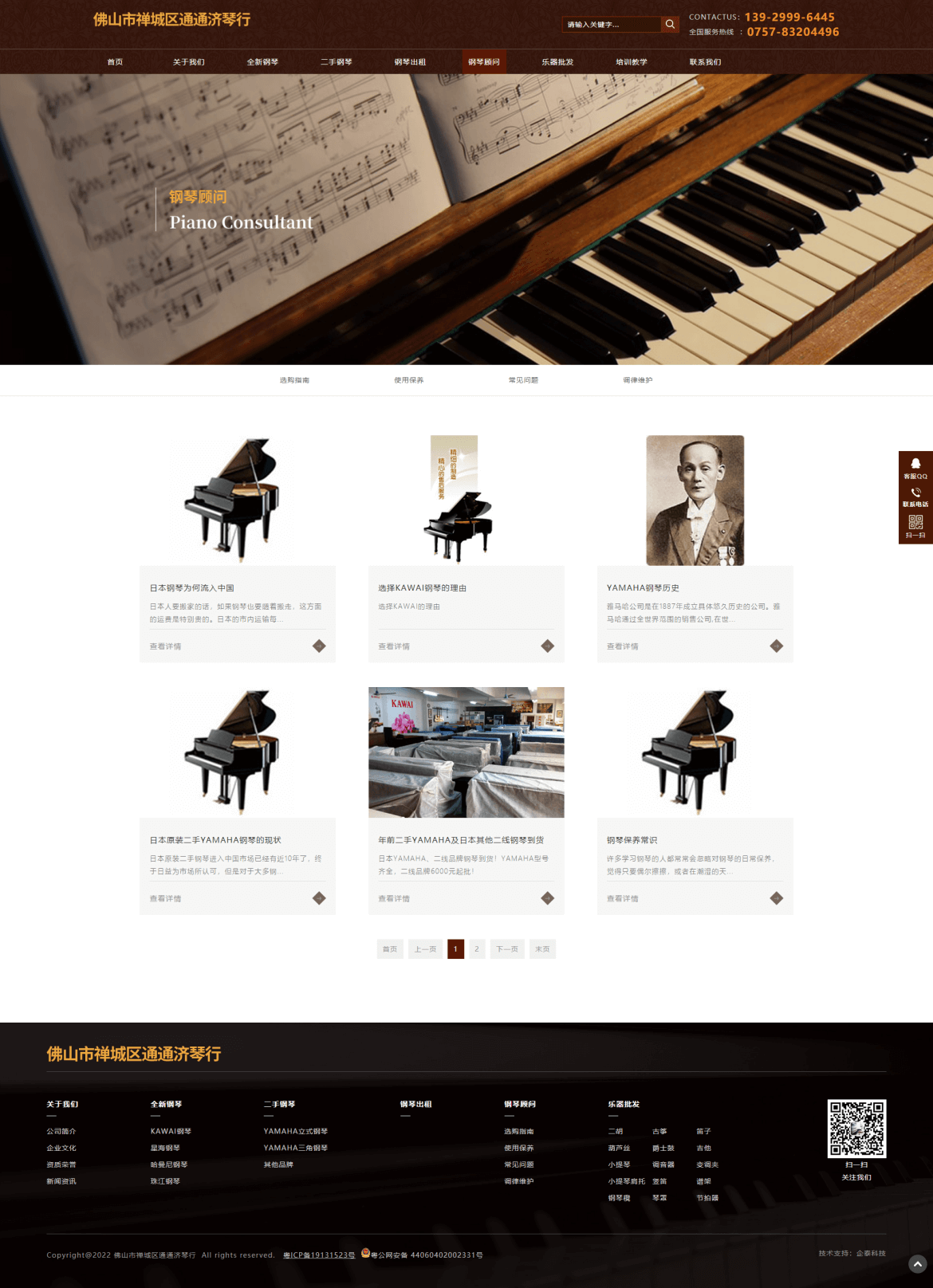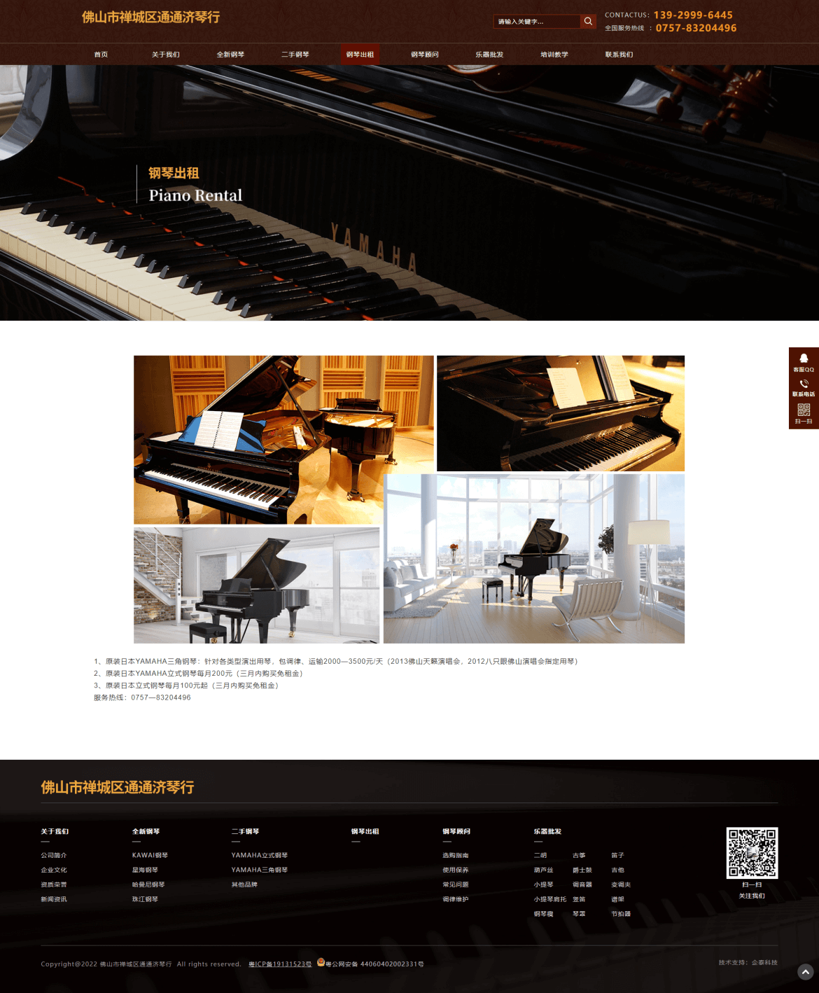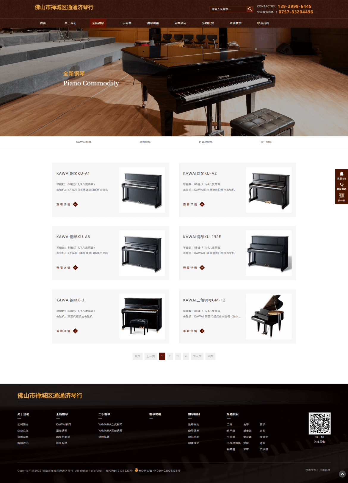 佛山市禅城区通通济琴行创办于1998年,长期经营日本原装进口二手YAMAHA钢琴、吉他、爵士鼓、电吉他、二胡、古筝、小提琴、葫芦丝、口琴、谱架、电钢琴、电子琴、琴凳、琴罩、各类书籍等批发业务。2010年通过良好的销售业绩成为全新进口KAWAI、全新宜昌KAWAI钢琴佛山代理商。货仓式钢琴展厅占地500多平方,二手全新钢琴货品齐全,是佛山地区最专业的钢琴批发商。多年来, 我们坚持“同质比价、同价比质”的经营服务理念,成为佛山地区最有影响力的琴行之一。